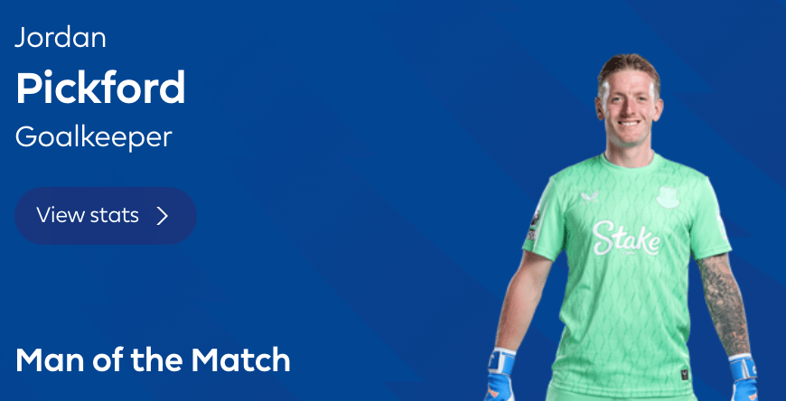 本場比賽皮克福德貢獻6次撲救,福德力保球門不失。當(dāng)選賽后,曼聯(lián)他當(dāng)選英超官方票選的板次全場最佳球員。