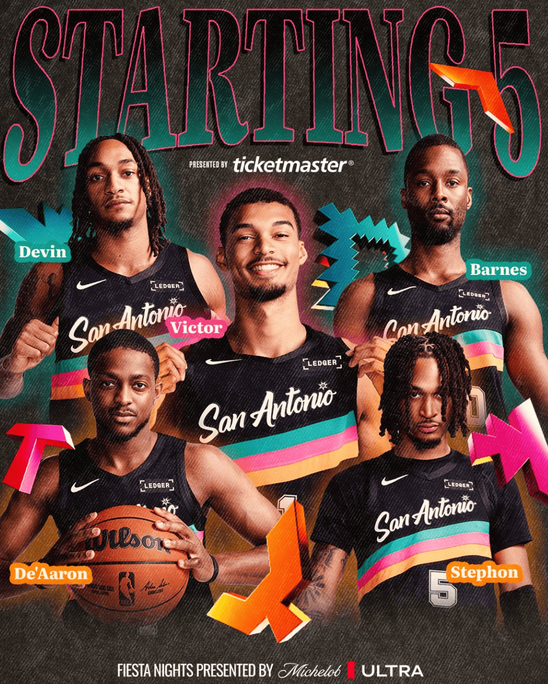 賽前,爾巴恩馬刺官方公布球隊(duì)本場(chǎng)首發(fā)陣容:達(dá)龍-??怂埂⒑臀乃沟俜?卡斯?fàn)?、板馬班德文-瓦塞爾、哈里森-巴恩斯和維克托-文班亞馬。