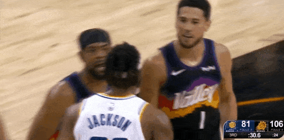 第三節(jié)比賽,上籃布克無(wú)視防守上籃再中,單節(jié)單節(jié)16分&狂噴垃圾話??駠?/p>