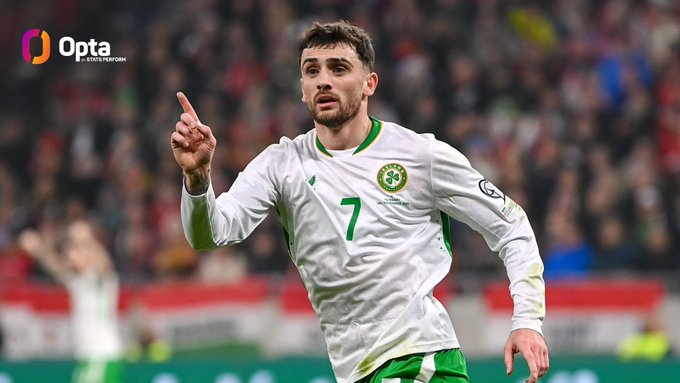 [流言板]Opta數(shù)據(jù)報道,帕羅特成愛爾蘭隊史第4位連續(xù)進球2+球球員