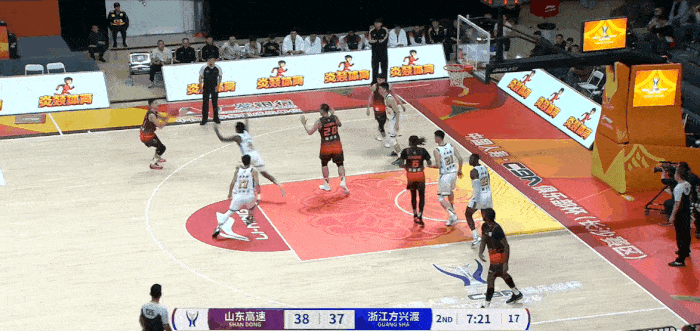 第二節(jié)比賽中,分線陳林堅(jiān)三分線外晃過對(duì)手投籃命中,外晃山東41-37領(lǐng)先廣廈。過對(duì)