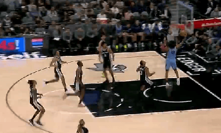 NBA常規(guī)賽,灰熊客場挑戰(zhàn)馬刺的空合空接比賽正在進行中。
