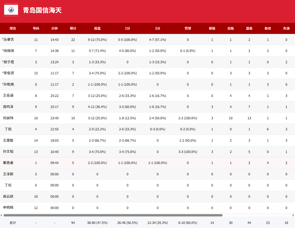 青島U19男籃:叢睿言22分、分青尚繼闊11分、男籃何昶瑋10分