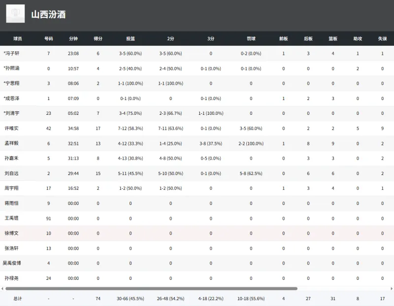 山西U19男籃:許唯實(shí)17分、賽叢劉自遠(yuǎn)15分、分青孟祥毅13分