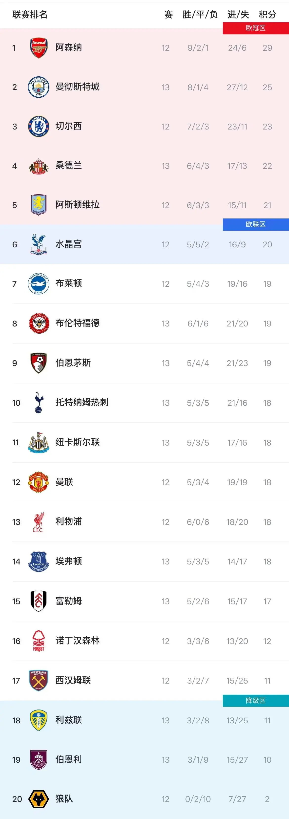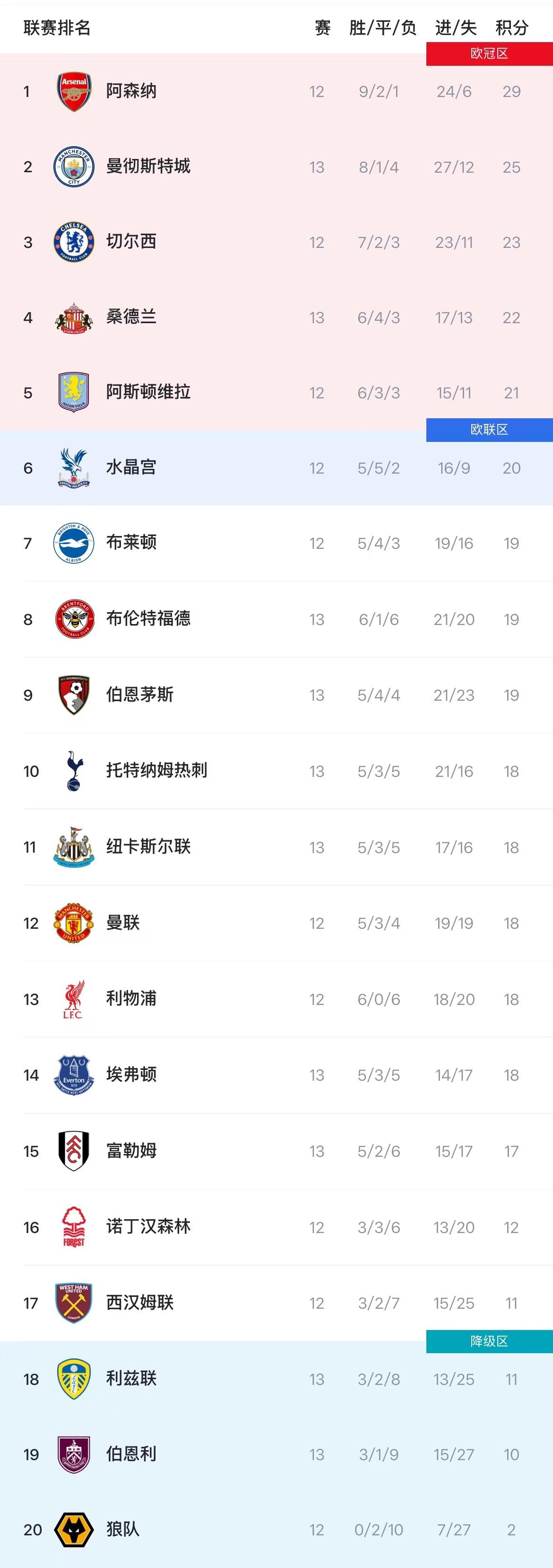 中游和保級區(qū)的排位也有不小波動。布倫特福德本輪比賽末段連進三球,3比1戰(zhàn)勝伯恩利,積分漲到19分,已從第13攀升至第8,把對手死死壓在降級區(qū)。紐卡則在客場4比1大勝埃弗頓,喜鵲積分追平熱刺、曼聯(lián)、利物浦、埃弗頓。