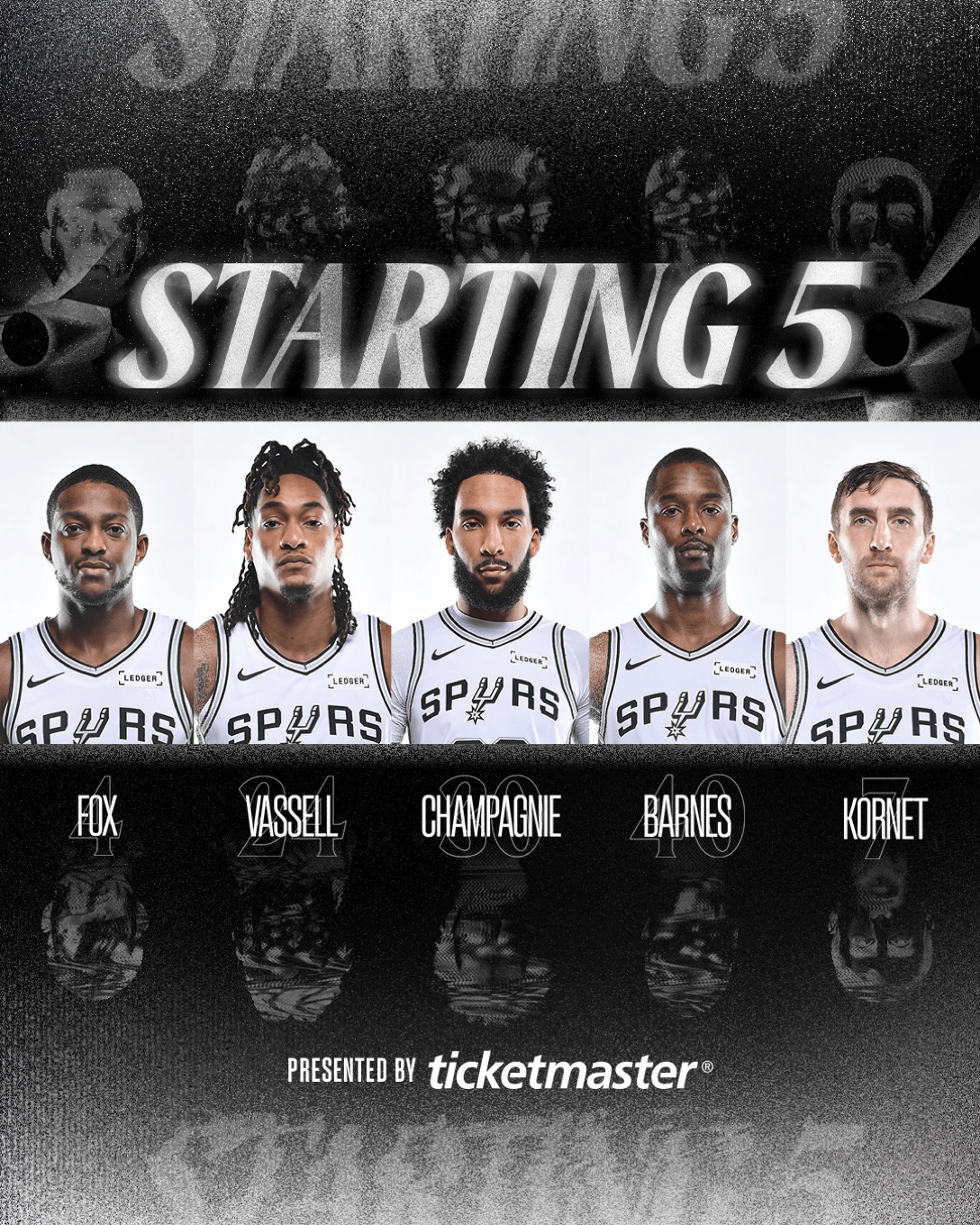 馬刺首發(fā):??怂埂l(fā)福瓦塞爾、瓦塞尚帕尼、爾尚巴恩斯、帕尼科內特