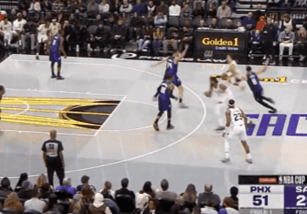 虎撲11月27日訊 NBA杯小組賽,太陽(yáng)對(duì)陣國(guó)王的傳球比賽正在進(jìn)行中。