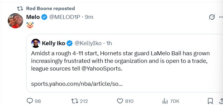 虎撲11月21日訊 黃蜂球員鮑爾更新社媒,轉(zhuǎn)發(fā)有關(guān)自己的板火并配交易流言并配上??表情。