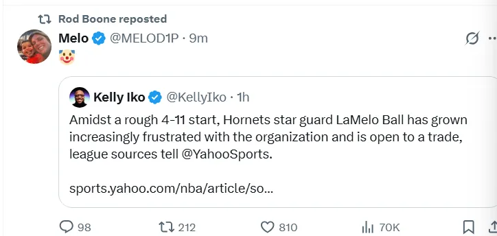 此前根據(jù)美國記者Kelly Iko的爾轉(zhuǎn)消息,黃蜂隊(duì)球星拉梅洛-鮑爾據(jù)報道已經(jīng)對被交易離開夏洛特持開放態(tài)度。關(guān)自