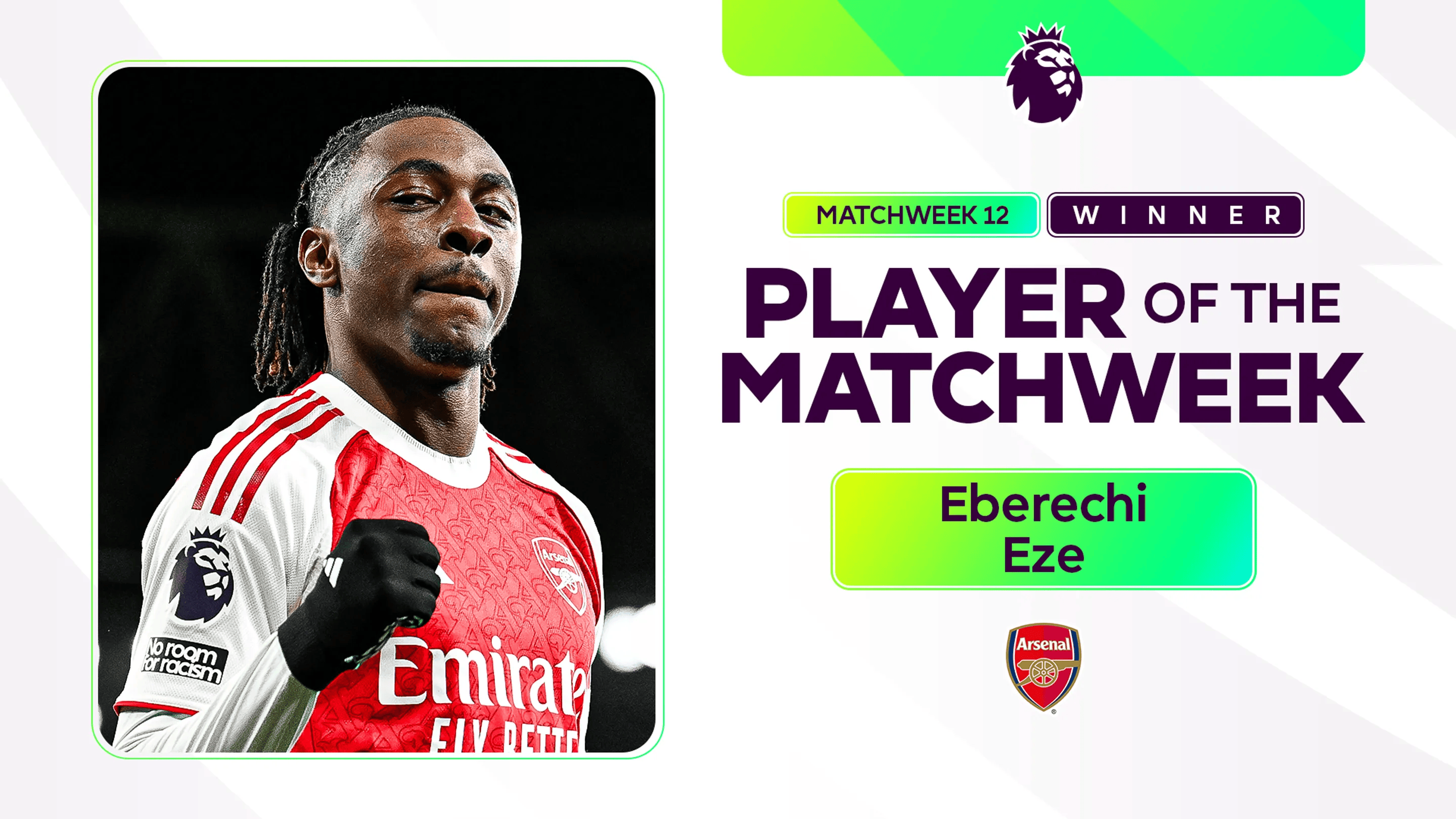 虎撲11月26日訊 官方消息,阿森納中場埃澤當選英超第12輪最佳球員。德比戴帽當選第輪