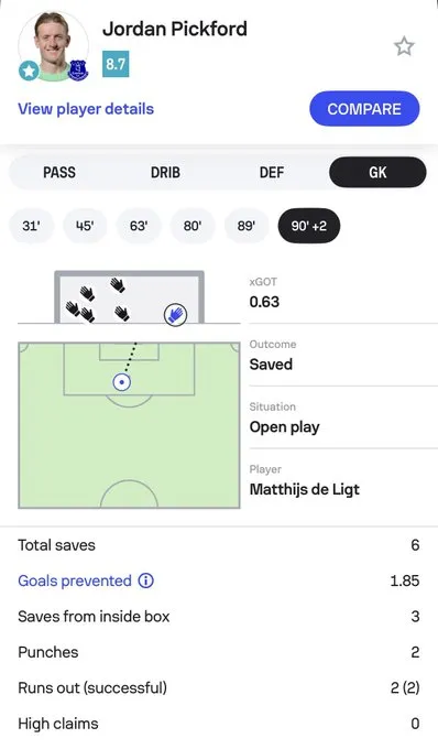 虎撲11月24日訊 本輪英超,曼聯0-1埃弗頓,德本皮克福德完成零封。季英