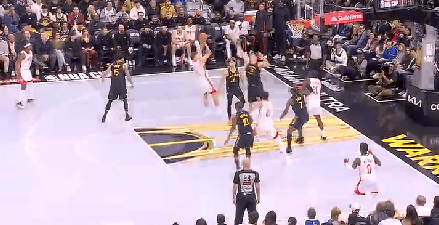 虎撲11月27日訊 NBA杯小組賽,火箭對(duì)陣勇士的潑德破扣比賽正在進(jìn)行中。
