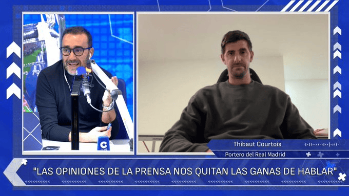 虎撲11月20日訊 皇家馬德里門將庫(kù)爾圖瓦接受科貝電臺(tái)獨(dú)家直播采訪。