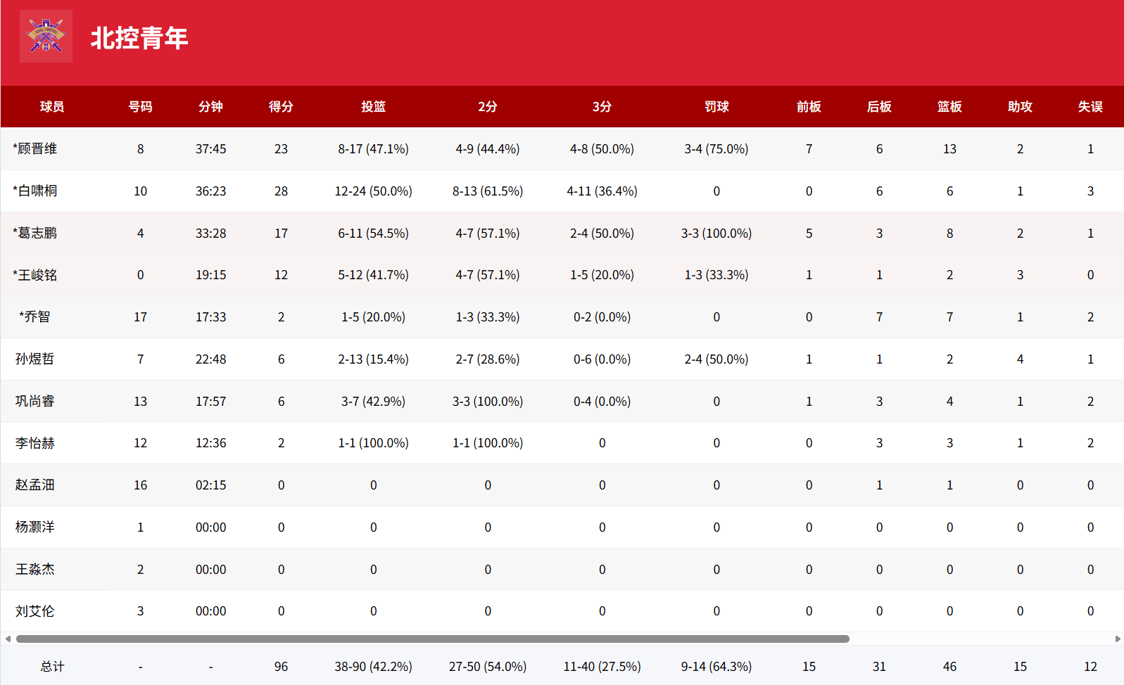 [流言板]U19全國賽:白嘯桐28分,北控U19男籃96