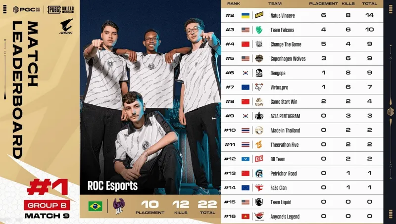 階段8,隨后ROC打倒WOLF兩人,雞單局淘隨后ROC打掉CTG一人,賽后NAVI進(jìn)攻FLC殘編成功,組小組賽但自己僅剩1人,雞單局淘不過(guò)隨后CTG獨(dú)狼在與NAVI獨(dú)狼1V1的賽后對(duì)陣過(guò)程中被淘汰,隨后ROC兩人進(jìn)攻NAVI獨(dú)狼輕松將其打掉,組小組賽完成吃雞。雞單局淘