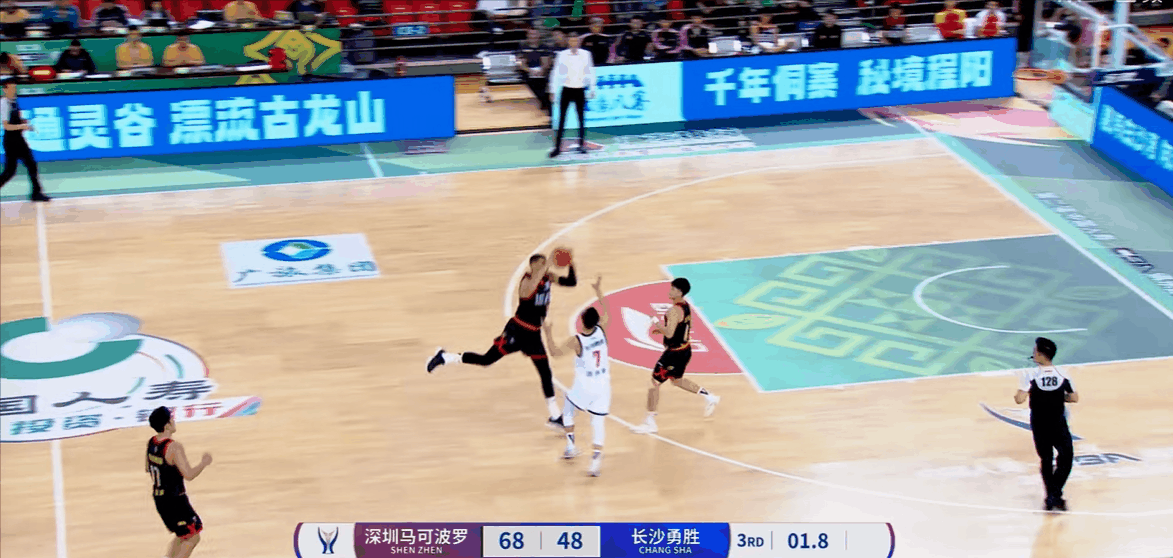 第三節(jié)比賽中,第節(jié)長沙隊第三節(jié)最后一攻被搶斷,最后目前48-68落后深圳20分。攻被