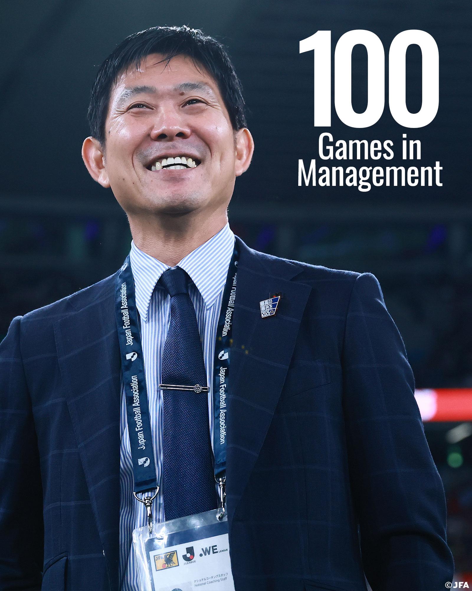森保一是取玻日本足球史上首位達(dá)成執(zhí)教百場的主教練。