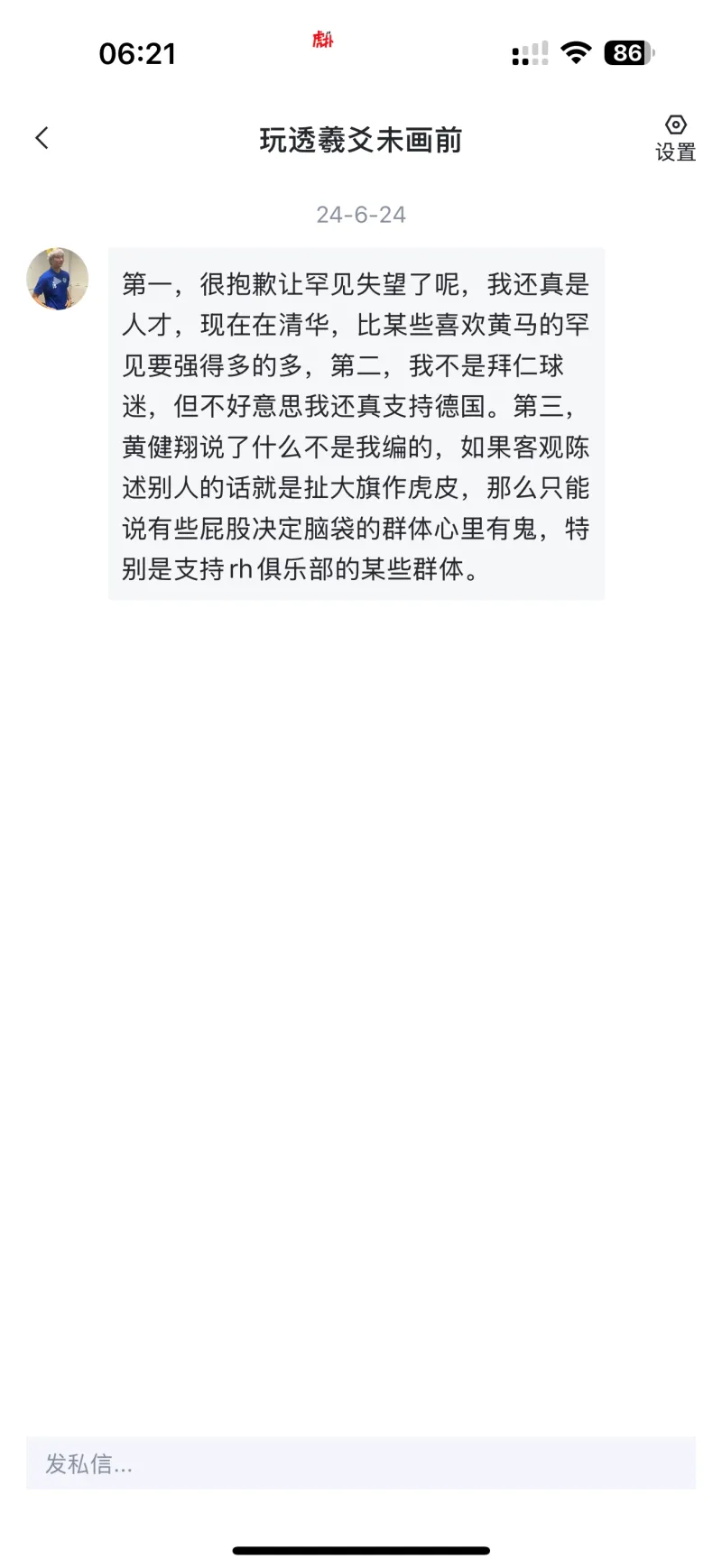 那個時候皇馬被圍攻,這玩意到處裝理中客來串,到前的私被我戳中了就經典私信泄憤后拉黑,還挺剛無意間看到以前的有意私信,點進去他主頁沒想到時隔一年露出雞腳了,無意哈哈哈當初就覺得他搞笑現(xiàn)在來看更是覺得幽默,連自己主隊都不敢漏出來到處串,現(xiàn)在想來估計是24年那不勒斯橫空出世,這拜仁又被皇馬淘汰自覺說出來不符合他高貴的身份吧,現(xiàn)在成績好了又恢復粉籍了…天下之大,無奇不有
