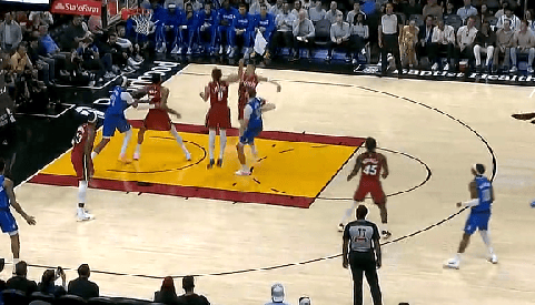 比賽的打迎第一節(jié),弗拉格持球單打,著兩中迎著兩人前后夾防之下中投命中。人前