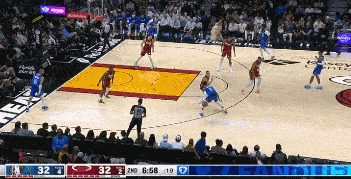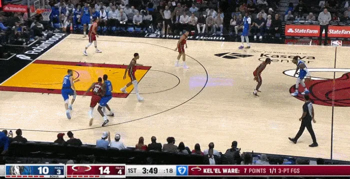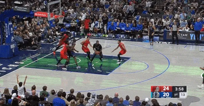 取代拉塞爾上場的是落選秀萊恩內(nèi)姆布哈德,而且打得還挺不錯: