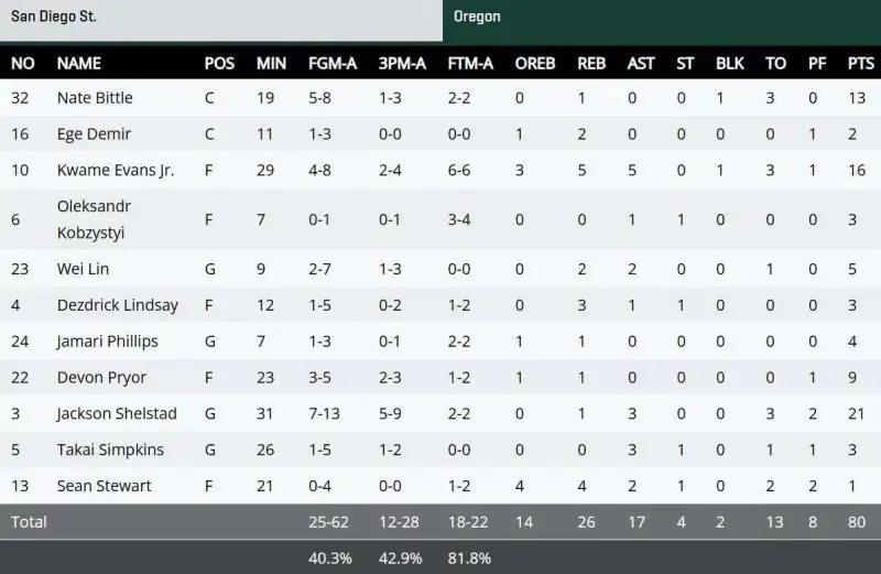 2.?圣地亞哥州立大學(xué):以“鐵血防守”立足,標(biāo)志性的“pack-line”防守體系堪稱聯(lián)盟標(biāo)桿。這場80 - 97贏球也延續(xù)了球隊(duì)風(fēng)格,通過緊密防守讓俄勒岡上半場進(jìn)攻受阻,還多次封堵對(duì)方強(qiáng)攻。進(jìn)攻端雖不算頂尖,但依托防守反擊創(chuàng)造機(jī)會(huì),陣容深度足且關(guān)鍵時(shí)刻執(zhí)行力強(qiáng),此前挺進(jìn)總決賽的賽季就靠這種“防守致勝”的打法多次上演險(xiǎn)勝。