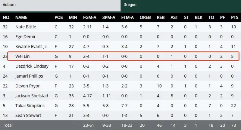 今天全美直播的NCAA賽場出現(xiàn)爆冷,俄勒岡大學(xué)80-97不敵圣地亞哥州立大學(xué)遭遇兩連敗,而咱們最關(guān)注的CBA本土得分王林葳,又交出了一場充滿爭議與希望的表現(xiàn)——9分鐘7投2中,三分3中1拿下5分2籃板2助攻,上半場離譜打鐵遭教練黑臉,下半場卻用妙傳展現(xiàn)價(jià)值,更被NCAA主持人嘲諷“CBA強(qiáng)度配不上NCAA”。