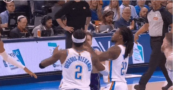 今日NBA常規(guī)賽,雷霆主場對陣湖人?;@被兩人攔下