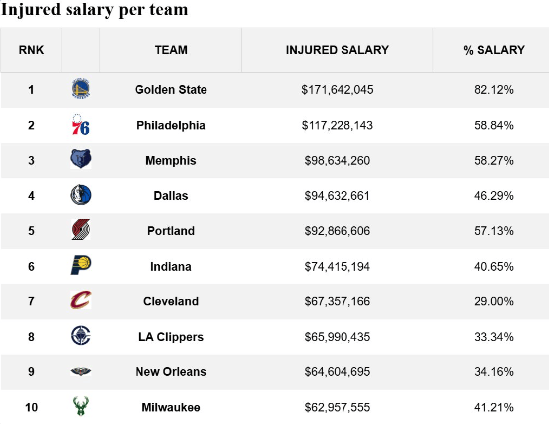 美媒HoopsHype更推表示,勇士今日比賽缺席球員的總薪水達(dá)到1.716億美元,占全隊(duì)總薪資的82.12%。