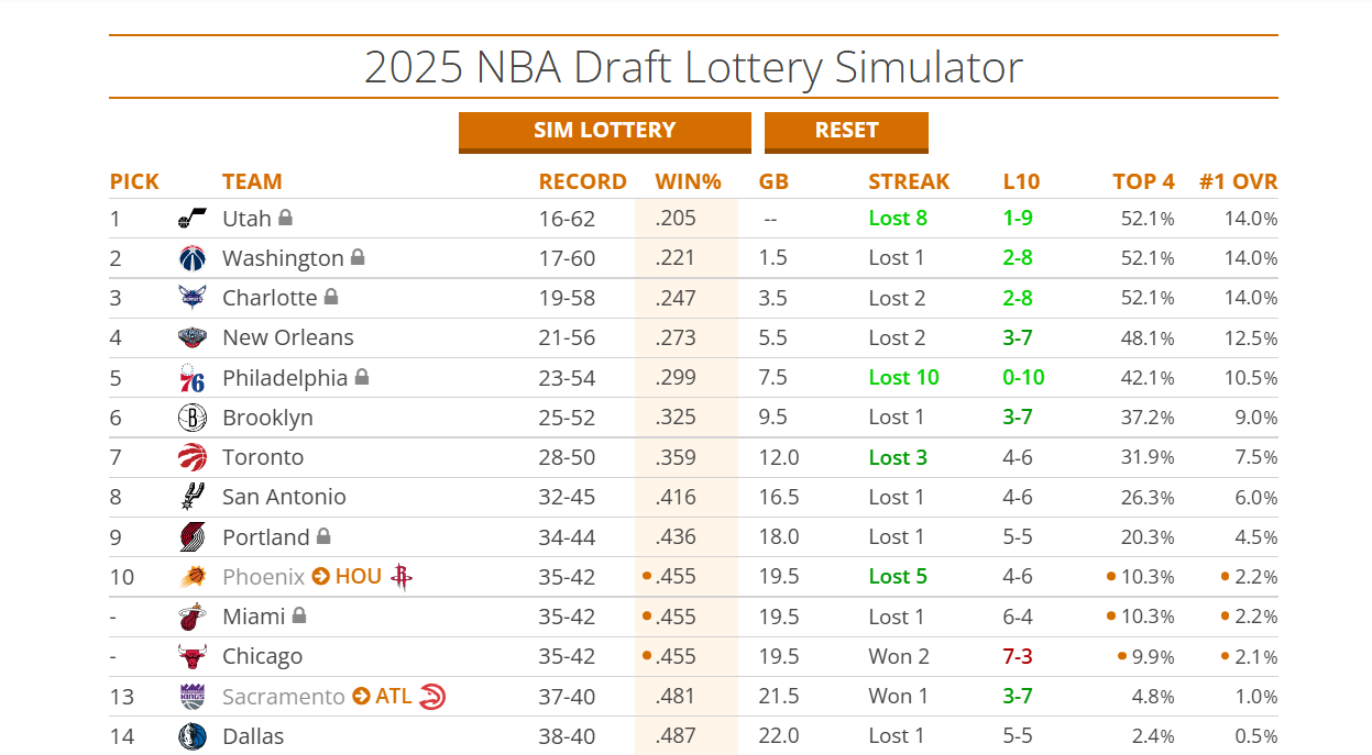 根據(jù)Tankathon的實(shí)時(shí)數(shù)據(jù),目前太陽的戰(zhàn)績已與熱火、公牛持平,并列聯(lián)盟倒數(shù)第十,他們有10.3%的概率抽中前4號簽,2.2%概率抽中狀元簽。