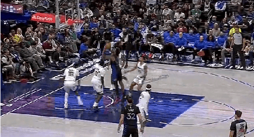 比賽的人合第二節(jié),華盛頓持球單打,圍強面對多人合圍強攻上籃打進2+1。攻上