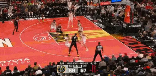 在中圈謝潑德和申京夾擊持球人穆雷,穆雷失誤,申京腦后傳球,謝潑德反擊中扣籃得分