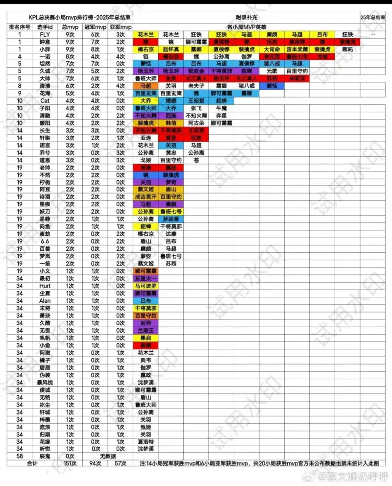 KPL總決賽小局MVP排行榜:Fly第一,決賽