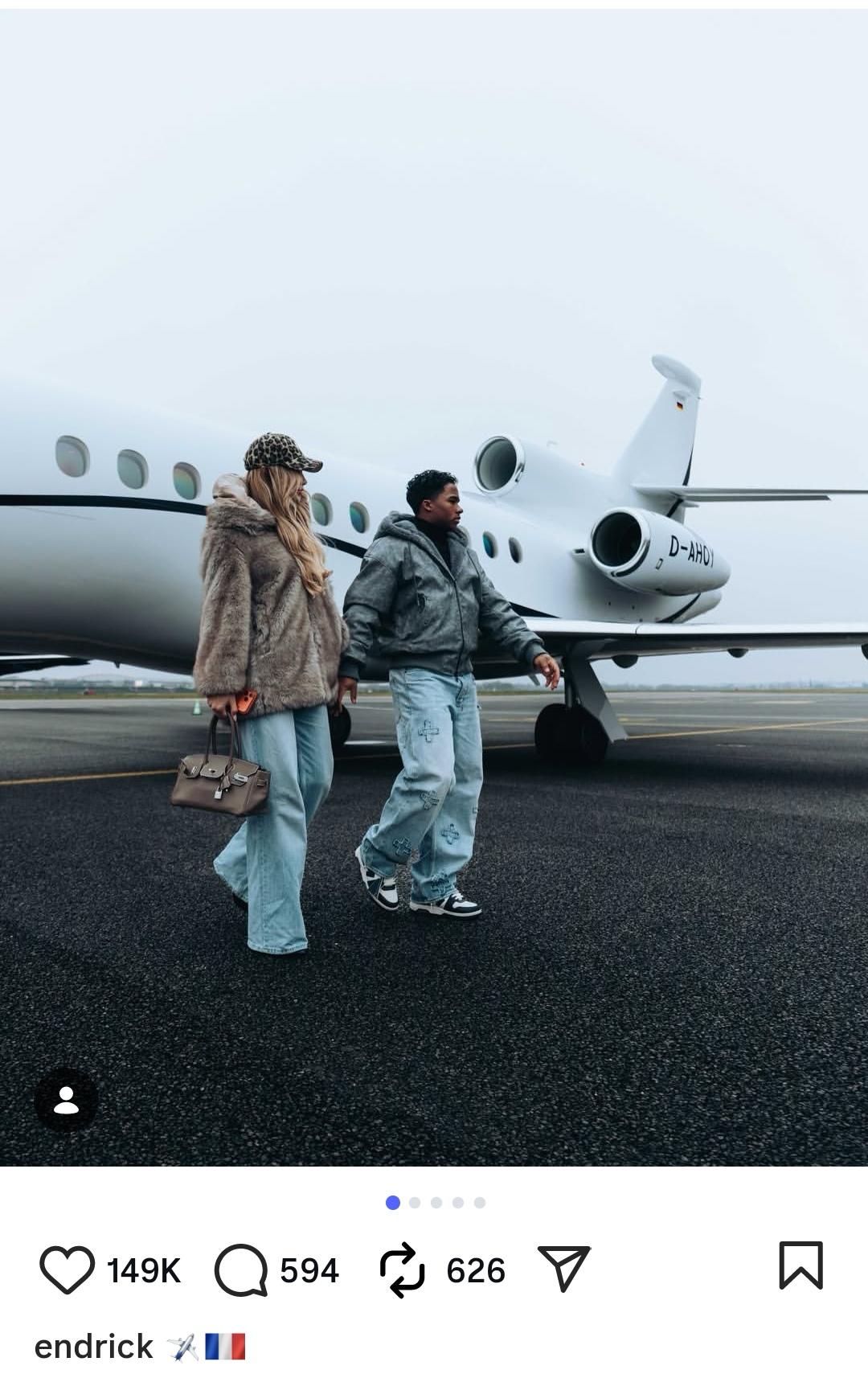 [流言板]恩德里克社媒曬與妻子登機照,二人啟程前往法國里昂