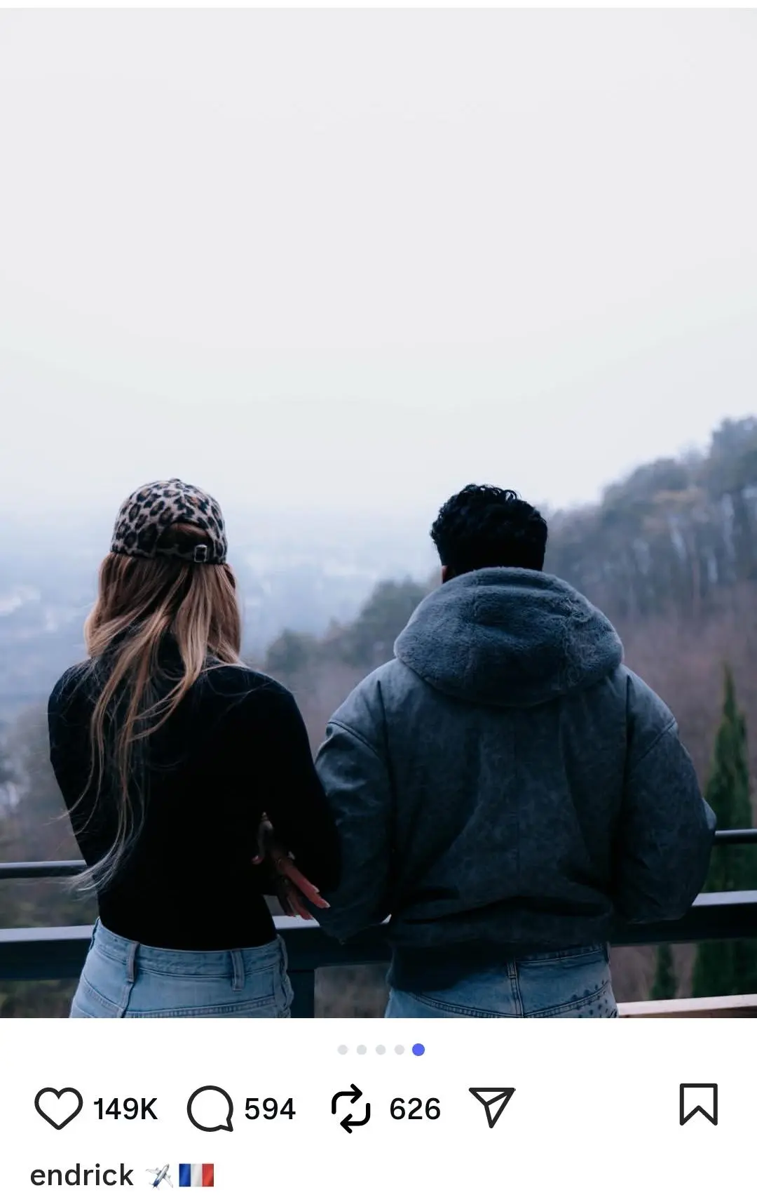 虎撲12月27日訊 恩德里克更新個人社媒,曬出與妻子啟程前往法國里昂的德里登機照片。
