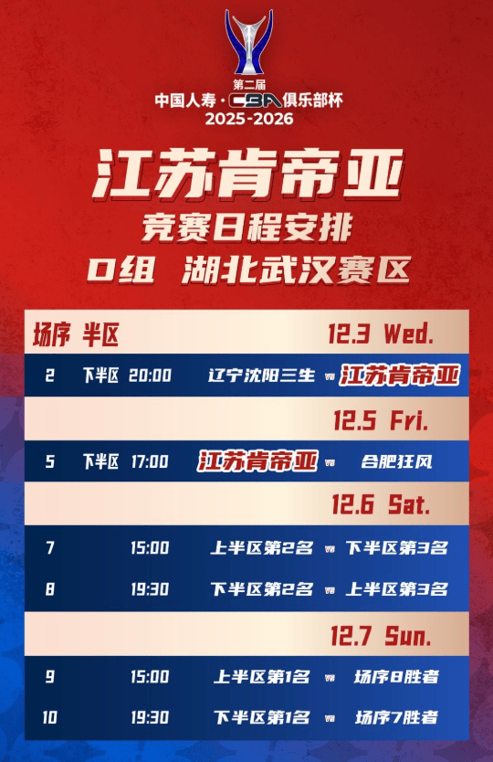 配文:第二屆CBA俱樂(lè)部杯賽江蘇小組賽賽程火熱出爐!享球??武漢見(jiàn)!隊(duì)俱對(duì)陣 ???