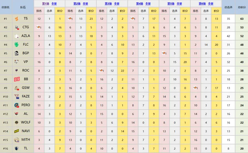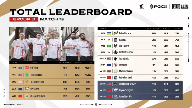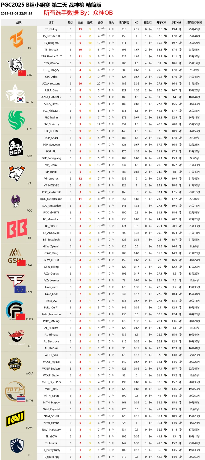 PGC2025 B組小組賽 第二天 積分榜&戰(zhàn)神榜