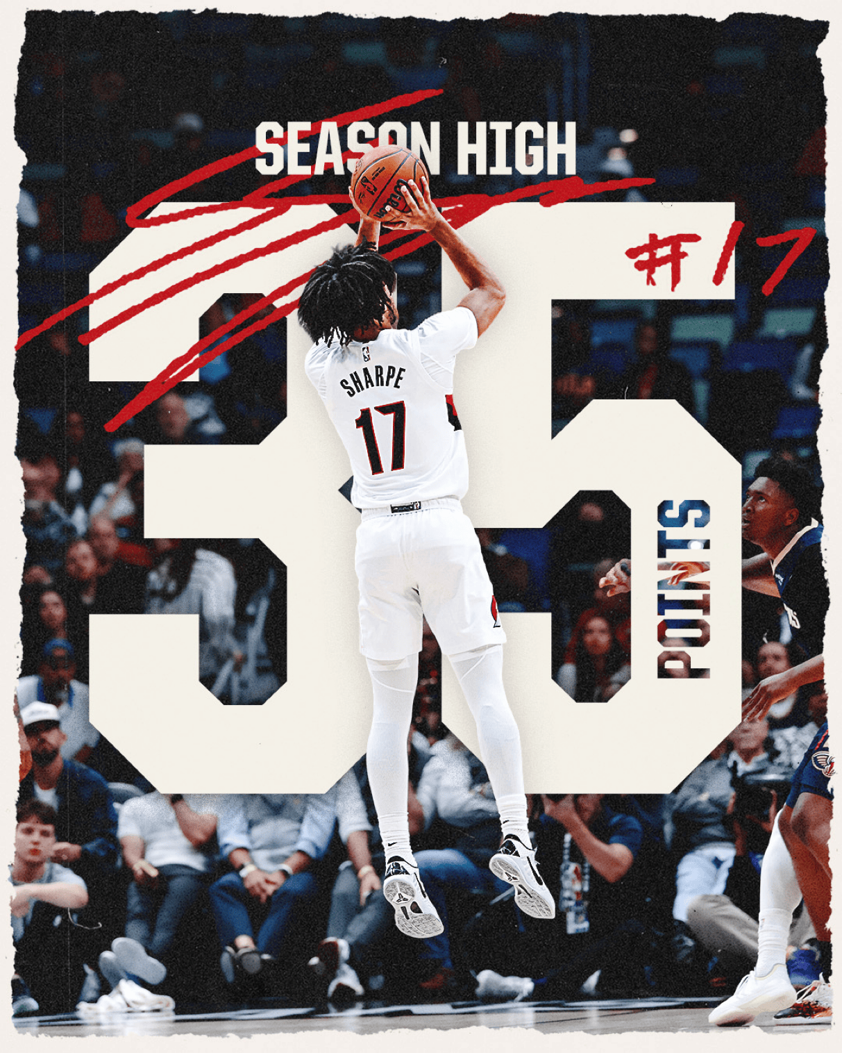 “在戰(zhàn)勝新奧爾良鵜鶘隊(duì)的最高比賽中,夏普獲得了賽季最高的流言力全35分!”開(kāi)拓者官媒附文道。
