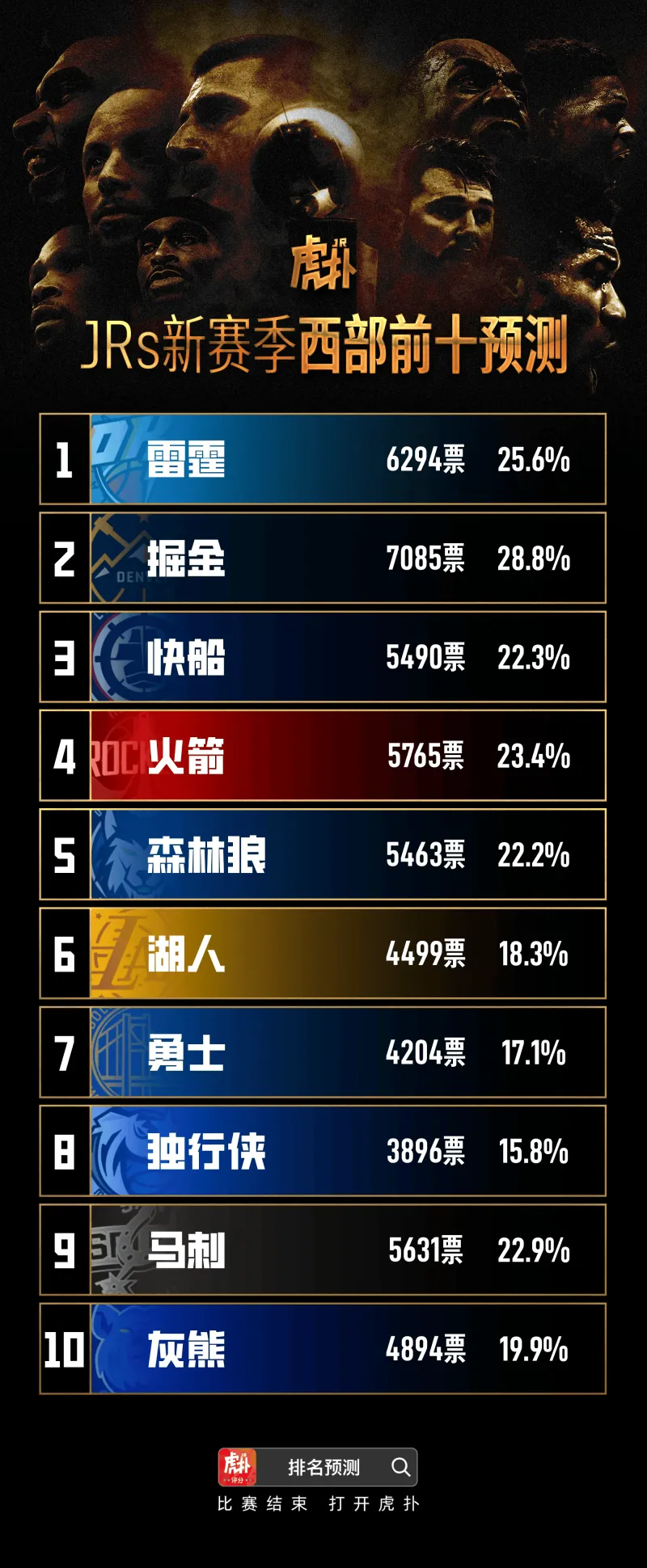 JRs在賽季前預(yù)測的預(yù)測西部排名如下: