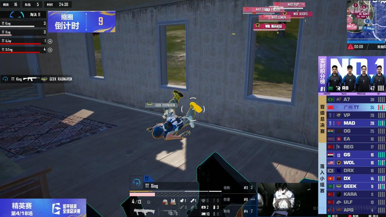 決賽圈TT三人配合DX-Levis好雷炸殘MAD數(shù)人,TT 18淘汰吃雞