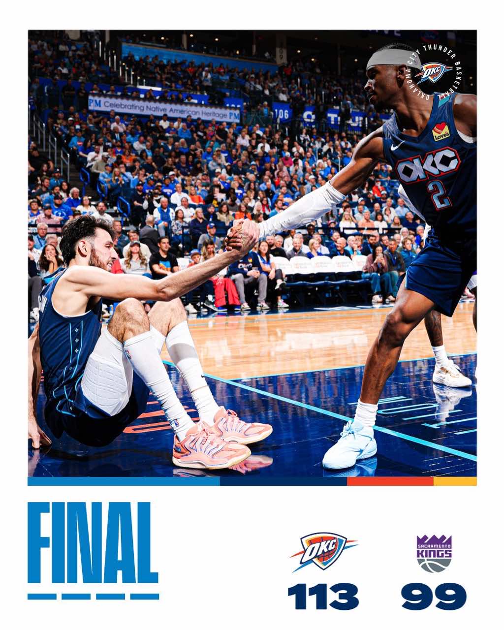 賽后,享本雷霆社媒分享本場(chǎng)比賽贏球海報(bào)。場(chǎng)比