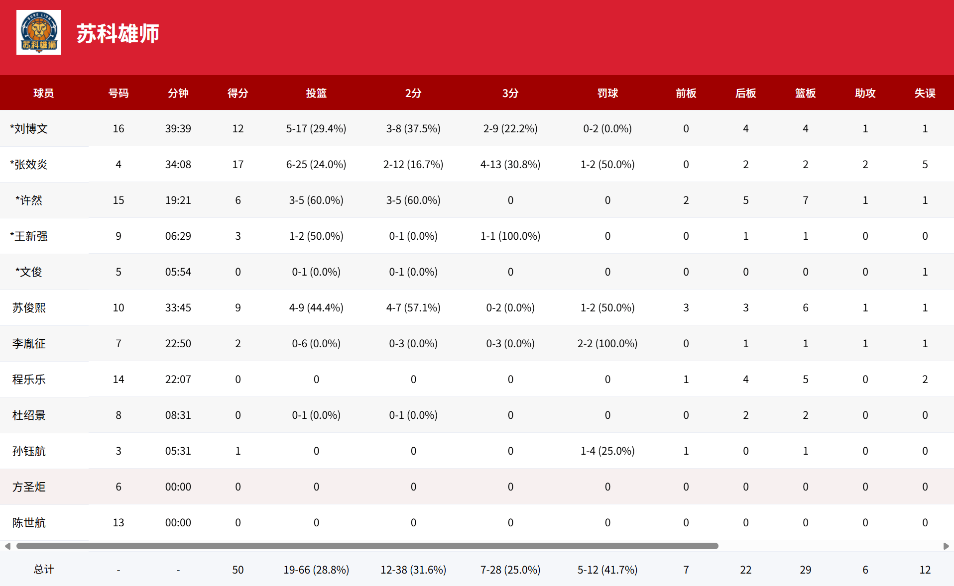 蘇科雄獅:張效炎17分、全國(guó)青年劉博文12分、賽霍蘇俊熙9分