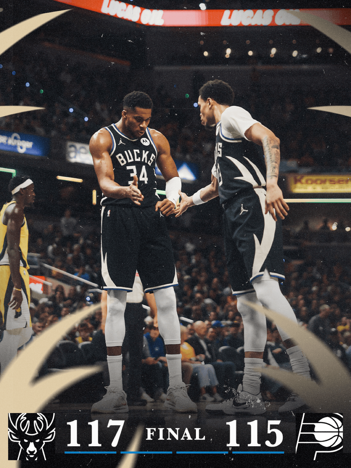 賽后雄鹿官媒更新了X,曬出了本場(chǎng)比賽的終場(chǎng)海報(bào)。